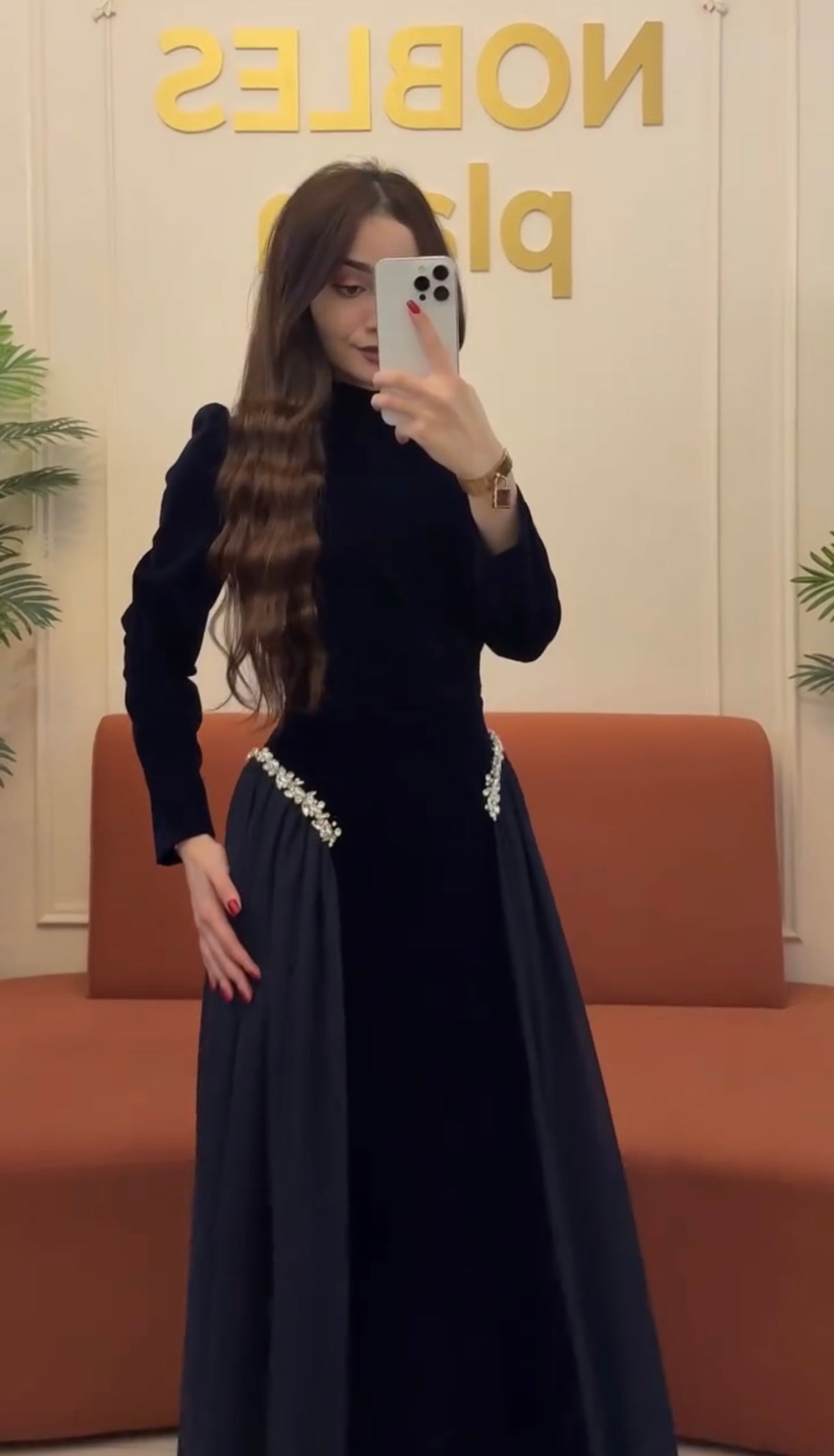 الفستان أنثوي، راقٍ، ويلائم المناسبات الفخمة، خاصة السهرات وحفلات الخطوبة. يجمع بين الفخامة المشرقية واللمسة الحديثة البسيطة